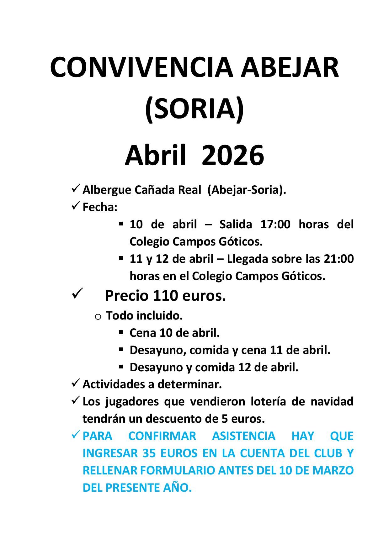 - Primer día, asistir al autobús con el chándal del club.